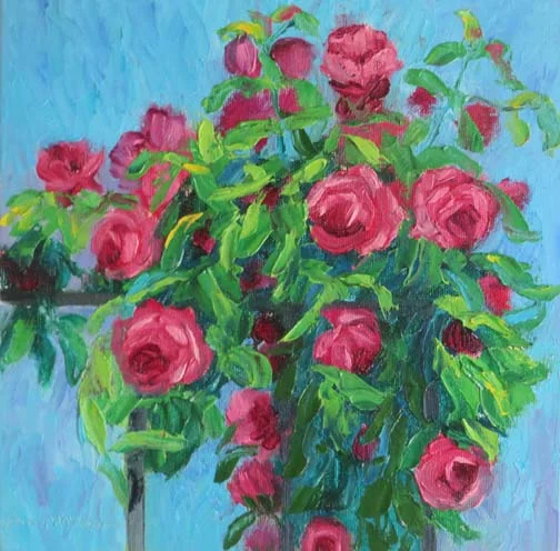 (c)Ann McCann, "Rose Trellis" 10 X 10 oil on canvas