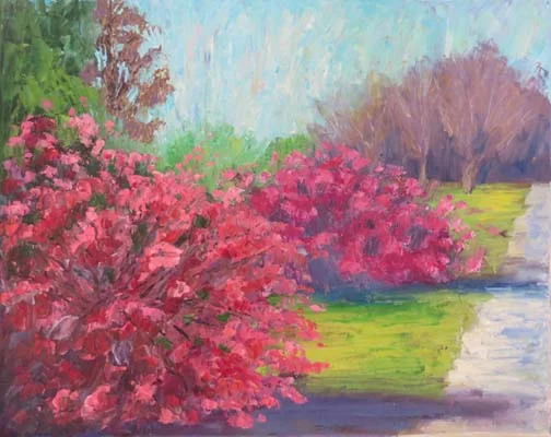 These flaming red-orange quince bushes reside in a very old cemetery in Dallas. Hidden away in the oldest part of the city, the cemetery is only "lightly" groomed and is beautiful in the spring with quince, lilacs and iris. There really are Civil War era graves including a Northern Yankee section. I was enchanted by the place.