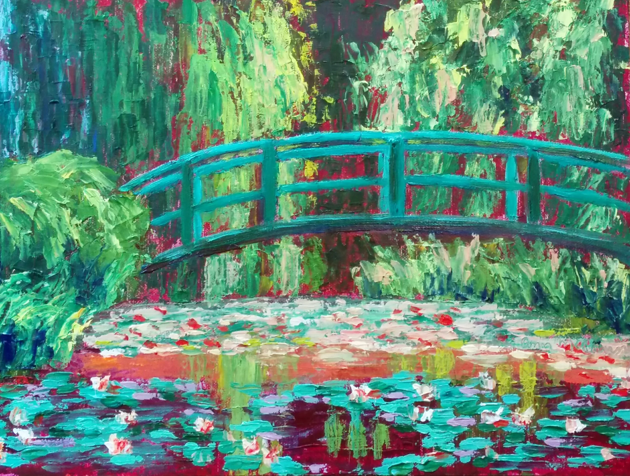 (c)Ann McCann in the style of Claude Monet, "Monet's Water Lily Pond Revisited," Oil on Linen Panel, 9 X 12"