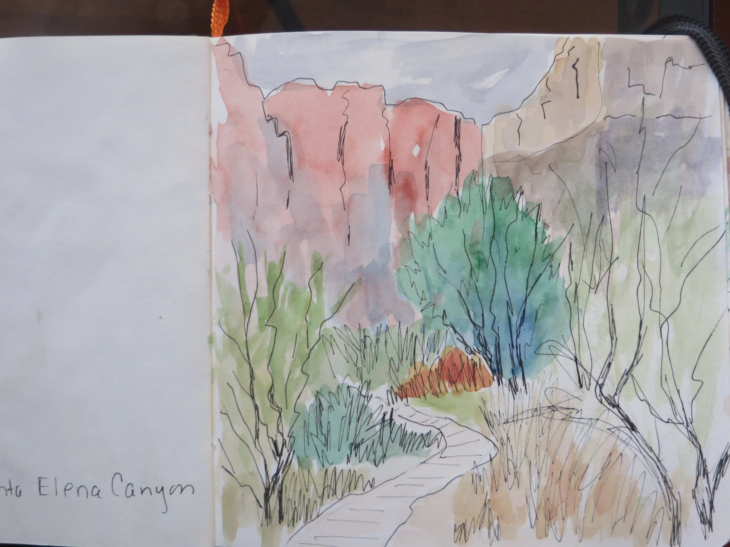 These days, I have cut back extensively on the supplies I carry. I take a sketch book, small set of watercolors, brushes, pencil, ink marker and camera. On site, I do a pencil sketch, then apply ink and then watercolor. I finish by taking photos of the site to help me create an oil painting in my studio. Then I also have nice watercolor journals of my trips.