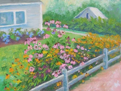 This is a cottage garden I saw last summer in Wellfleet, Cape Cod. I liked the juxtaposition of the old fashion flowers and the vintage fence and buildings. Feels like home to me. Happy Thanksgiving everyone!