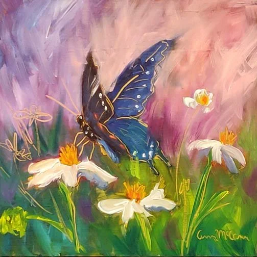 Happy Thanksgiving Family & Friends! November 27, 2025 Butterfly Calligraphy” by Ann McCann 8 X 8” Oil