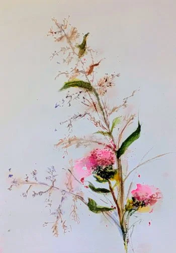 "Pink Thistle" by Ann McCann 9 X 12" Watercolor March 31, 2026 The weeds in your backyard can be quite beautiful!